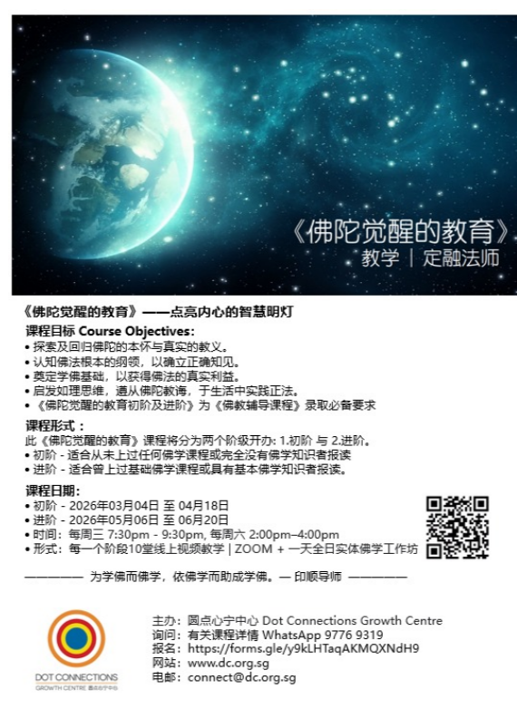 Connect with Empathy & Compassion. Grow in Wisdom 通过推展佛教教育和提供佛教辅导服务,来推广佛陀的智慧和慈悲的理念。Promote Buddhist Wisdom and Compassion through Dhamma education and Buddhist counselling & training.